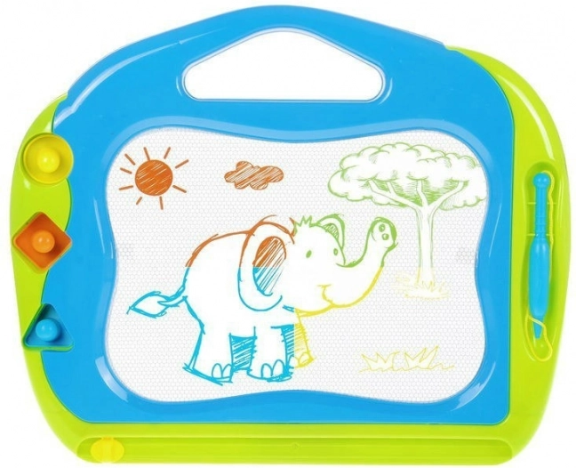 Dieses Set enthält eine große magnetische Tafel mit weißer Zeichenfläche und integriertem farbigem Hintergrund (Rot, Grün, Blau, Gelb) sowie eine kleinere Reisetafel gratis. Mit dem beiliegenden Stylus und drei Stempeln (Kreis, Quadrat, Dreieck) können Kinder farbenfrohe Bilder gestalten, Formen üben und ihre Kreativität entwickeln.