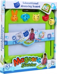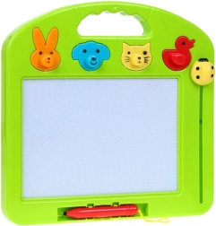Kinder freuen sich über 4 große Tierstempel (Kaninchen, Hündchen, Kätzchen, Entchen), die das Gestalten bereichern. Der Zeichenstift an der praktischen Kordel geht auch im Eifer des Spiels nicht verloren. Die Tafel ist so gestaltet, dass sie gleichzeitig Vorstellungskraft, Konzentration und Hand-Auge-Koordination fördert.