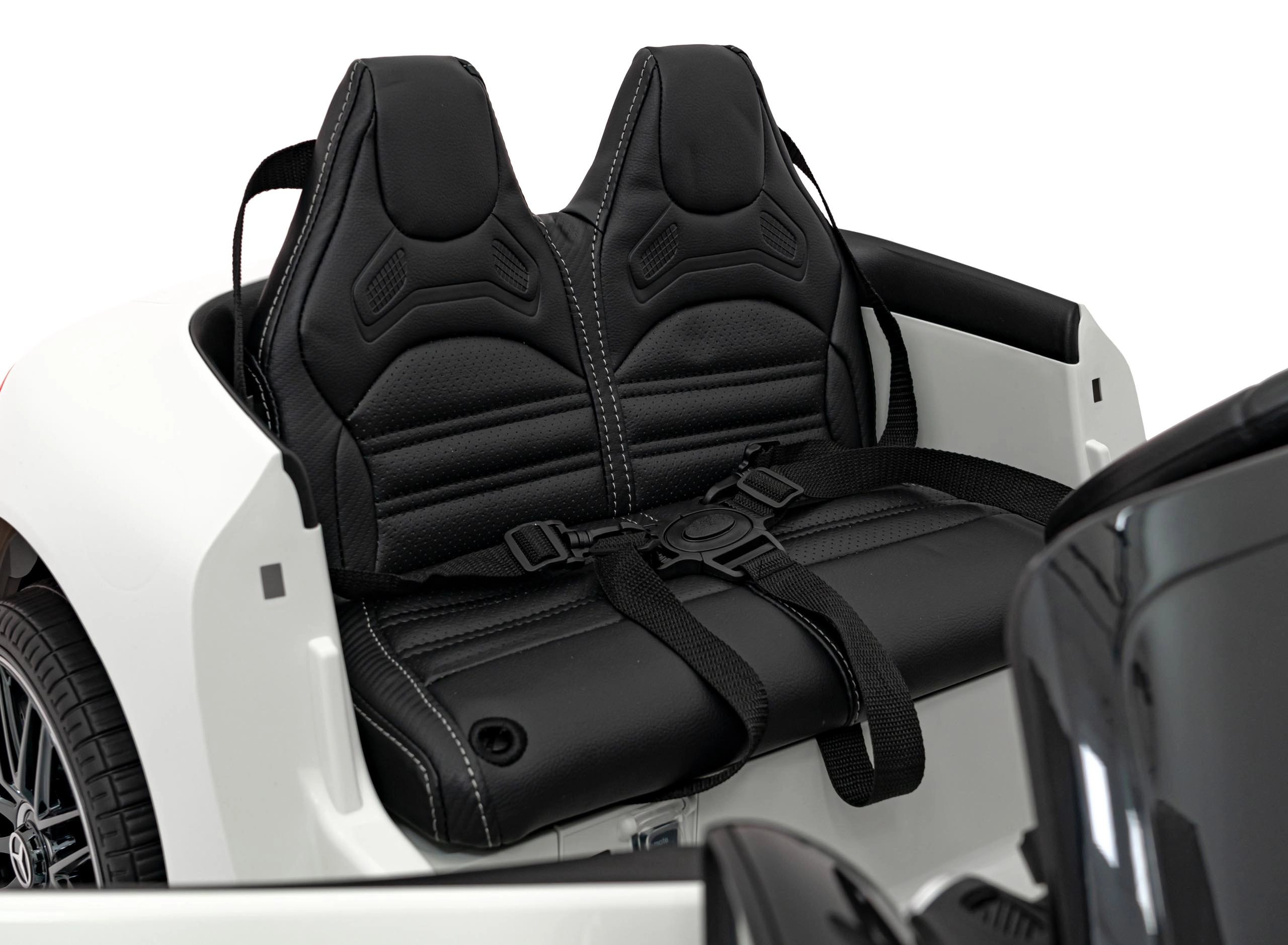 Der Mercedes‑Benz AMG SL63 für Kinder ist ein stilvolles Cabrio mit Schwerpunkt auf Sicherheit und Komfort. Dank sanftem Anfahren, hinteren Stoßdämpfern und erhöhter Bodenfreiheit von 10 cm fährt er ruhig und stabil. Gesteuert wird entweder vom Kind per Pedal und Lenkrad oder von den Eltern per 2,4‑GHz‑Fernbedienung mit drei Geschwindigkeiten und sofortigem Stopp.