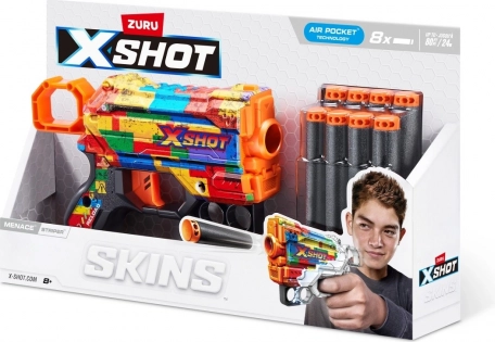 X-Shot SKINS MENACE Werfer (8 Pfeile) Muster Striper