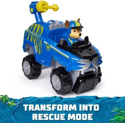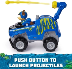 Der beliebte Held Chase kommt mit seinem thematischen, vom Dschungel inspirierten Fahrzeug. Einfach den vorderen Grill unter das Chassis klappen und die „Tiger“-Reißzähne erscheinen. Dann den Aktivierungsknopf drücken und der versteckte Abschuss-Mechanismus im Schwanz hebt sich. Projektil – Tennisball laden und per Knopfdruck Hindernisse auf dem Weg zur Rettung beseitigen.