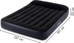 Die Samt-Luftmatratze von INTEX mit Maßen von 191 x 137 x 25 cm ist ideal für 2 Personen. Sie besteht aus robustem PVC, die Oberseite ist mit einer angenehm weichen, wasserabweisenden Samtoberfläche bezogen. Das dunkle Marineblau passt in jedes Interieur. Dank der integrierten elektrischen Pumpe (Netzspannung 220–240 V) ist das Bett in 250 Sekunden einsatzbereit. Über das Boston-Ventil lässt es sich in weniger als einer Minute entlüften, zusammenlegen und im Schrank verstauen.