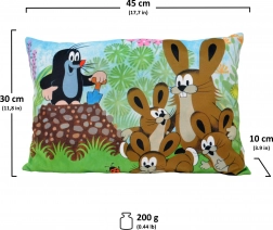 Weiches Kissen mit Motiv des beliebten Maulwurfs und der Hasen, ideal für das Kinderbett, unterwegs oder als bezaubernde Dekoration im Kinderzimmer.