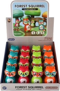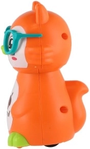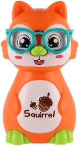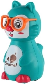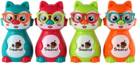 Lustiges Eichhörnchen aus Kunststoff mit Schwungradantrieb, das sich nach dem Herunterdrücken des Kopfes von selbst in Bewegung setzt. Dank einfacher Bedienung, robustem Kunststoff und leuchtenden Farben ist es das ideale Spielzeug für Kinder ab 3 Jahren und fördert die Entwicklung von Motorik und Fantasie.