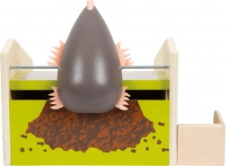 Ein spezieller Mechanismus hebt den Maulwurf an, sobald der Ball den Tunnel passiert – das "Winken" liefert sofortiges Feedback und motiviert Kinder zum Wiederholen.