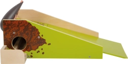 Die widerstandsfähige Rampe mit Tunnel und sicheren Materialien (Holz, Metall, Filz) hält täglichem Spielen stand und unterstützt Motorik und Konzentration.
