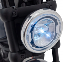 Authentisches Chopper-Design mit vorderem LED-Licht für mehr Sicherheit und Spaß beim Fahren.