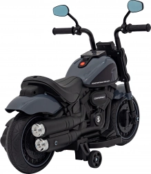 Stylisches elektrisches Kinder-Motorrad im Chopper-Stil bietet dank LED-Scheinwerfer, Vorwärts- und Rückwärtsfahrt sowie einem umfangreichen Audio-Panel (FM-Radio, MP3, USB, SD, Bluetooth, AUX) ein realistisches Fahrerlebnis. Leichte und stabile Konstruktion mit Stützrädern, ergonomischer Sitz und übersichtliches Bedienfeld sorgen für Spaß und Sicherheit für kleine Fahrer.