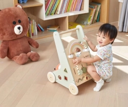 Dank der stabilen Konstruktion und leicht laufender, geräuscharmer Räder unterstützt der Wagen die Verbesserung von Gleichgewicht und Koordination. Auf der Rückseite befindet sich ein praktischer Stoff-Stauraum für Spielzeug, damit Kinder ihre Schätze immer dabeihaben.