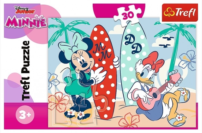 Setze dieses niedliche Bild der beliebten Figur Minnie aus der Disney-Welt zusammen. Das Puzzle enthält 30 Teile, was die ideale Anzahl für jüngere Kinder ist. Die Größe des fertigen Puzzles beträgt ungefähr 27 x 20 cm, was eine einfache Handhabung und Aufbewahrung ermöglicht.
