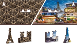 Puzzles enthalten Teile, die bekannte Gebäude, Tiere und Objekte entsprechend dem thematischen Motiv darstellen.