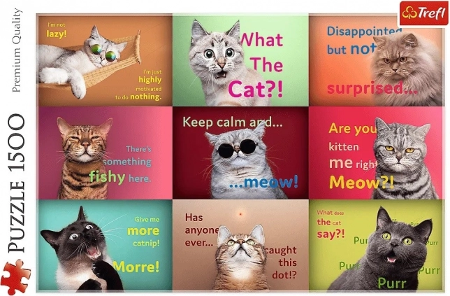 Erleben Sie Spaß und Konzentration mit einem Puzzle, das 1500 Teile mit lustigen Katzenporträts enthält.