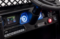 Front-, Heck- und obere LED-Lichter, beleuchteter Startknopf und ein umfangreiches Audio-Panel (MP3/USB/AUX/Bluetooth) schaffen ein authentisches Fahrerlebnis.