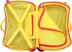 Das widerstandsfähige Kunststoffgehäuse, die Tragfähigkeit bis 20 kg und integrierte Trittflächen ermöglichen es dem Kind, bequem zu sitzen und zu rollen – ideal für Flughallen und Bahnhöfe. Das Innenleben in leuchtendem Gelb sorgt für einen verspielten Look und besseren Überblick über den Inhalt.