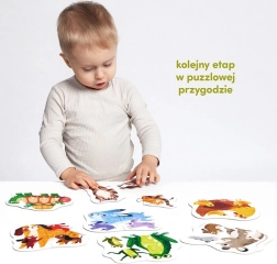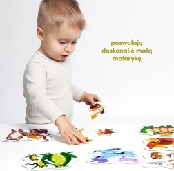 Dieses farbenfrohe Puzzle voller Wärme und Humor besteht aus 4 Teilen. Es ist eine großartige Wahl für Kleinkinder, die bereit für den nächsten Schritt ihres Puzzle-Abenteuers sind. Das Suchen und Verbinden der Teile ist ein unterhaltsames Spiel, das den scharfen Blick und die Geschicklichkeit der Hände trainiert und fröhlich das Lernen neuer Wörter unterstützt.