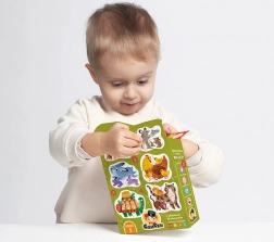 Die Tiere laden dazu ein, ihre Geräusche (großartig für die Entwicklung des Sprechapparats) und Bewegungen nachzuahmen: hüpfen wie Hasen, sich strecken wie Kätzchen, laufen wie Hunde. Das ist großartige Gymnastik und macht Spaß.