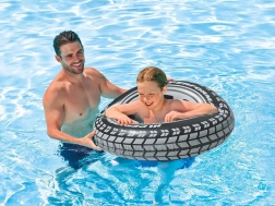 Wir bieten Ihnen einen stilvollen aufblasbaren Ring in Reifenform, ideal zur Entspannung und Unterhaltung im Wasser. Dieses Produkt besticht durch sein realistisches Laufflächenmuster und kontrastreiche Farben, die ihm einen einzigartigen Charakter verleihen. Es ist eine hervorragende Wahl sowohl für Pools als auch Strände oder Seen.