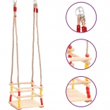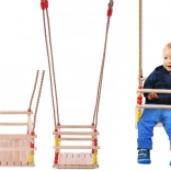 Die geschlossene vordere Stange und robuste, geflochtene Seile mit Beschlägen halten das Kind beim Schaukeln sicher an Ort und Stelle.