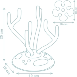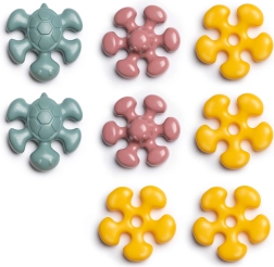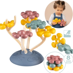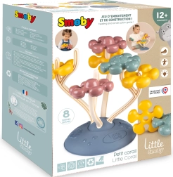 Kleines Smoby Korallenspielzeug ist aus acht farbenfrohen Plastikelementen gefertigt, die an dekorative achtbeinige und schildkrötenförmige Objekte erinnern. Kinder können die Teile leicht miteinander verbinden und deren Anordnung auf den Ästen des Baumes ändern, was ihre Kreativität fördert.