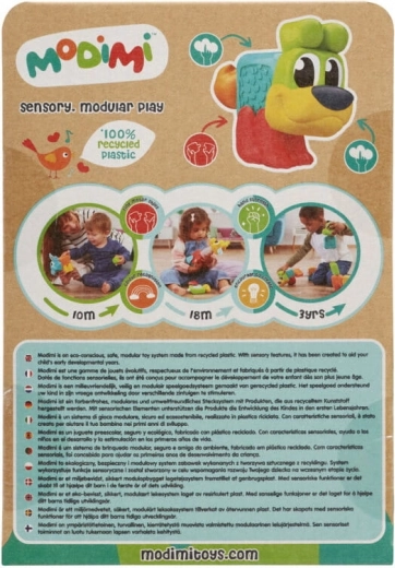 MODIMI präsentiert ein umweltfreundliches, sicheres und modulares Spielzeugsystem aus recyceltem Kunststoff. Dieses System nutzt sensorische Funktionen und wurde entwickelt, um die Entwicklung Ihres Kindes im frühen Alter zu unterstützen.