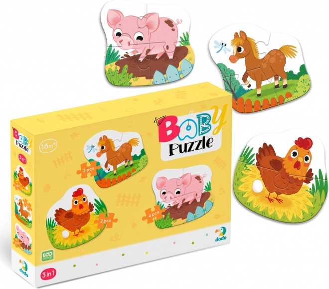 Baby-Puzzle Bauernhoftiere 3-in-1 (2, 3, 4 Teile) DODO