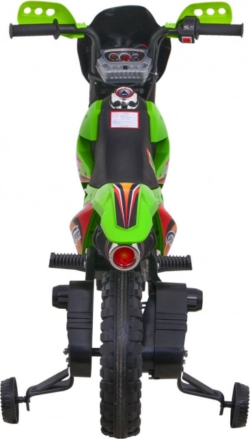Das elektrische Kinder-Motorrad im Cross-Stil ist ideal für die ersten Fahrten auf zwei Rädern. Die einfache Bedienung dank Gasgriff und Vorwärtsmodus stärkt das Vertrauen, während abnehmbare Stützräder auf jedem Untergrund für Stabilität sorgen. Vordere LED-Lichter und ein Panel mit Geräuschen und Melodien sorgen für eine Extraportion Spaß und Realismus.