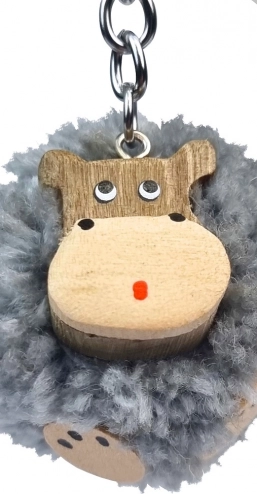Bezaubernder Holz Schlüsselanhänger Pompon Nilpferd für Naturliebhaber. Handgefertigt, einzigartig und universal als Geschenk.