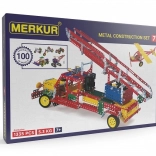 MERKUR 7 ist ein robuster klassischer Metallbaukasten, der ein universelles Teileset bietet, ergänzt durch spezielle Komponenten für den Bau eines großen Feuerwehrautos, großer Kräne und vieler weiterer funktionaler Modelle. Dank des übersichtlichen Anleitungsbuchs bauen Sie Schritt für Schritt Dutzende attraktiver Konstruktionen.