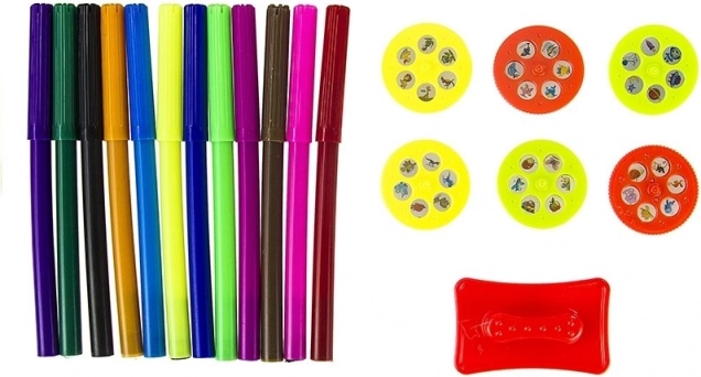 Enthalten sind 6 austauschbare Scheiben mit insgesamt 36 Motiven, die Kinder leicht projizieren und nachzeichnen können. Ideal für die ersten Zeichenschritte ohne Frust.