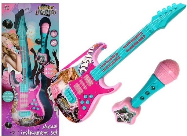 Tolles Set für kleine Künstler, die davon träumen, auf der Bühne zu stehen! Dieses Zubehör ermöglicht es Kindern, sich wie wahre Musikstars zu fühlen, indem sie ihre rhythmischen und vokalen Fähigkeiten entwickeln. Gitarre mit Mikrofon ist ideal für diejenigen, die gerne singen, spielen und auftreten.