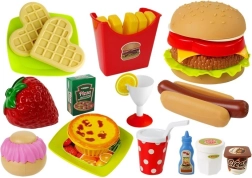 Machen Sie Ihr Kind mit der Welt kulinarischer Abenteuer vertraut dank unserer Spielküche mit Plastiklebensmitteln! Dieses bunte Set enthält alle bekannten Leckereien von Hamburgern bis zu süßen Waffeln – ideal, um spielerische Kochaktivitäten zu simulieren.