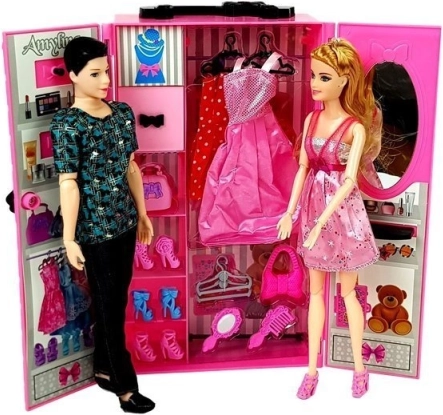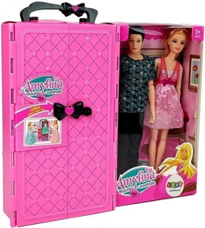 Puppen-Set Junge und Mädchen mit Kleiderschrank und Outfits im Koffer
