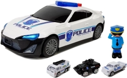Dieses Modell kombiniert die Funktionalität eines großen Polizeiautos und einer Garage für kleine Fahrzeuge, was Vielseitigkeit und Spaß in einem bietet.