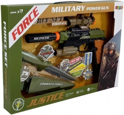 Militär-Set für kleine Action-Fans: enthält eine Pistole mit Licht- und Soundeffekten, ein Gummimesser mit Scheide und eine Medaille. Hergestellt aus hochwertigem Kunststoff, in Armeegrün, ideal für kreatives Spiel und als Ergänzung zum Kostüm. Die Pistole bietet Schussgeräusche, Lichteffekte, Schalldämpfer, Visier und Taschenlampe. Geeignet ab 3 Jahren, Batterien sind enthalten.