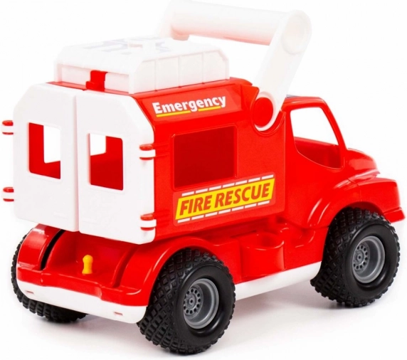 - Realistisches Design: Leiter, Wasserkanone und die klaren Aufschriften „Fire Rescue“ fördern das Rollenspiel.