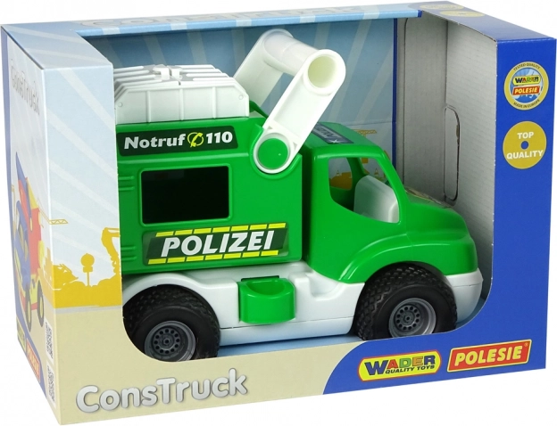 Entdecken Sie ein hochwertiges und sicheres Spielzeug für die Kleinsten – das Polizeiauto ConsTruck in Grün. Dank der robusten Verarbeitung, den Gummirädern mit Profil und der einfachen Handhabung ist es ideal für erste Rennen und zum Entdecken der Welt. Öffnende weiße Hecktüren und ein oberes Fach ermöglichen Kindern den Transport kleiner Schätze und Figuren.
