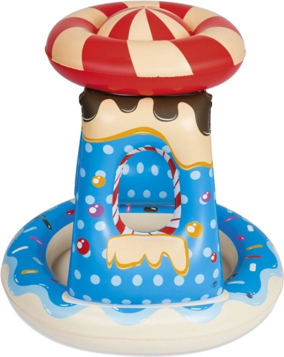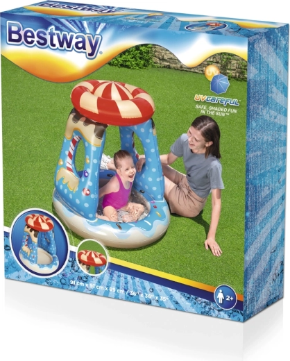 Das aufblasbare Planschbecken ist an heißen Tagen ideal für Kleinkinder. Es lässt sich leicht aufpumpen, entleeren und verstauen und eignet sich hervorragend für den ersten Kontakt der Kinder mit Wasser. Der Pool ist mit Streuseln und verschiedenen, von Süßigkeiten inspirierten Grafiken verziert, die sicherlich die Aufmerksamkeit auf sich ziehen und die Kleinsten erfreuen. Die Seitenwände sorgen für die Sicherheit der Kinder und erleichtern die Aufsicht beim Spielen. Das aufblasbare Dach schützt wirksam vor Sonnenstrahlen.