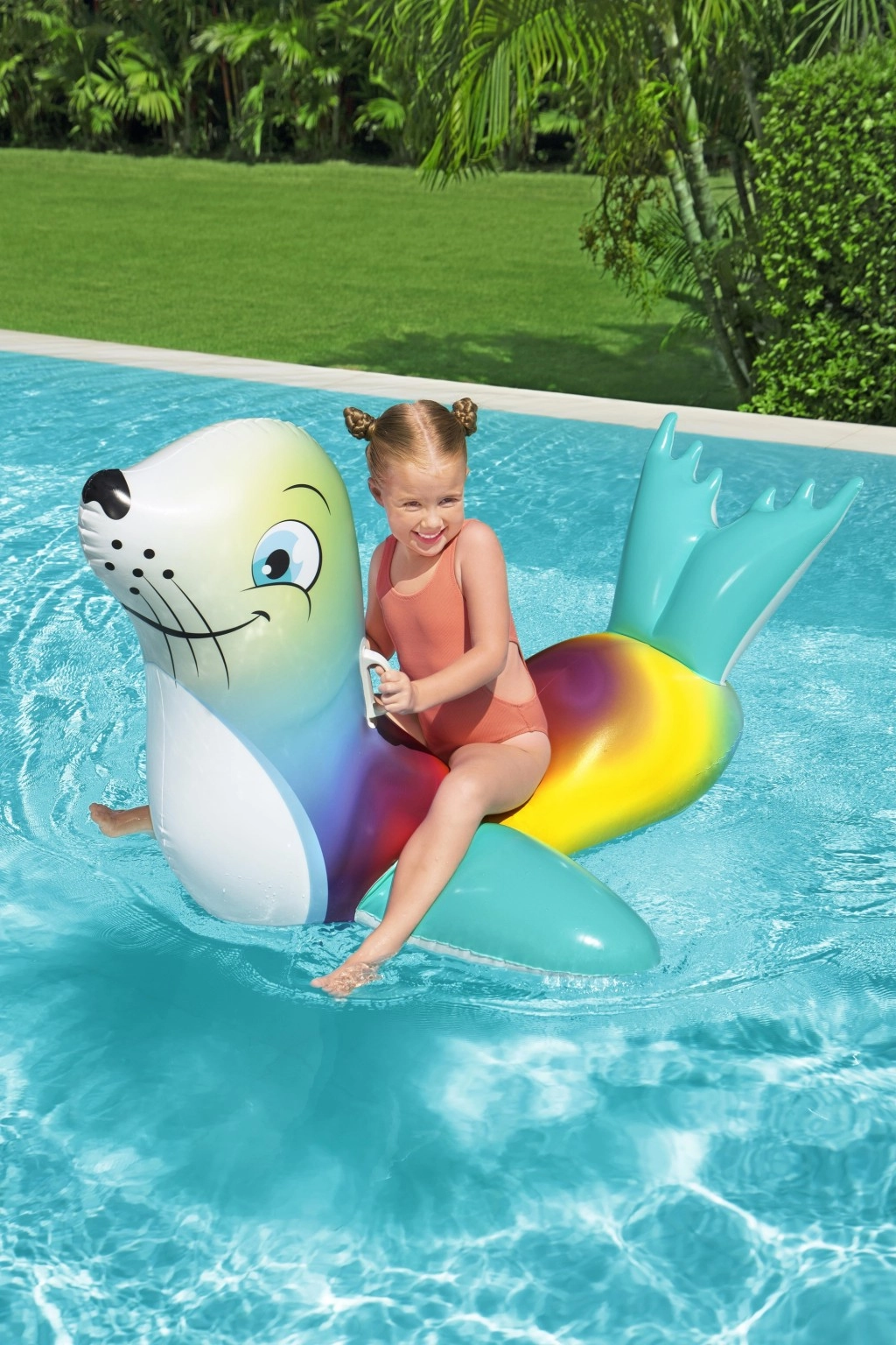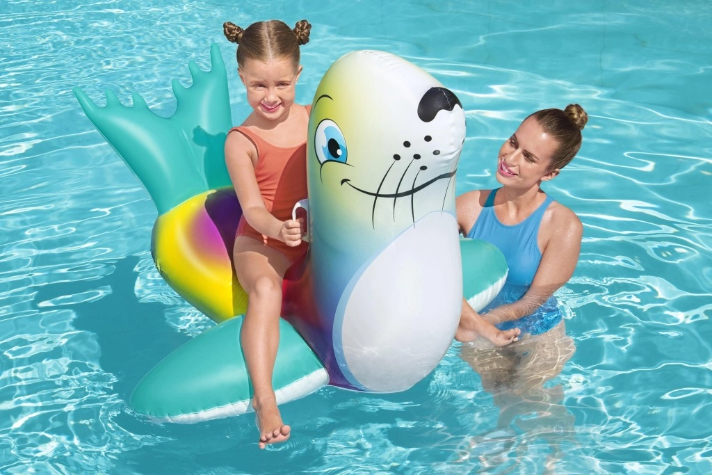 Genießen Sie unbeschwerte Sommerfreuden mit der bunten aufblasbaren Robbe – ideal für Kinder ab 3 Jahren. Zwei praktische Griffe gewährleisten einen sicheren Halt und bessere Balance, während die glatte, robuste Oberfläche Komfort beim Spielen und Ausruhen auf dem Wasser bietet.