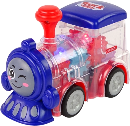 Die Lokomotive hat ein transparentes Gehäuse, sodass Kleinkinder beim Spielen sehen können, wie der Zug funktioniert. Sie ist bis ins kleinste Detail ausgearbeitet: Im Inneren befinden sich Zahnräder, die sich bei der Bewegung drehen. Ergänzt wird das Ganze durch farbige LEDs. Die Konstruktion besteht aus strapazierfähigem Kunststoffmaterial, das häufigem Gebrauch standhält.