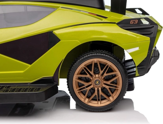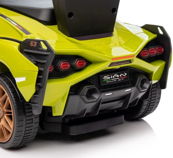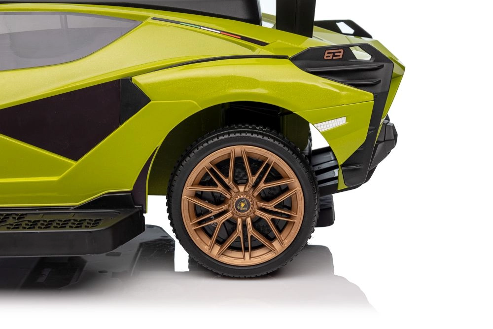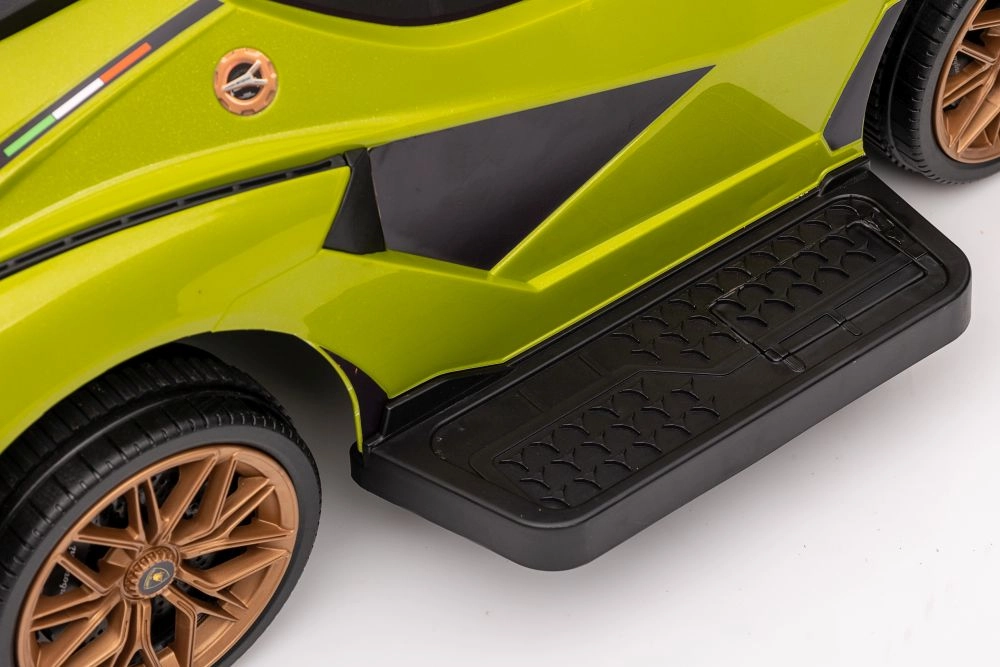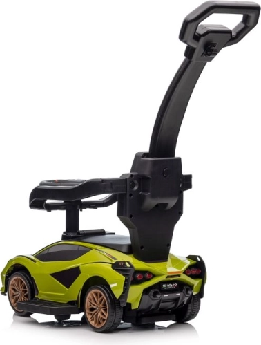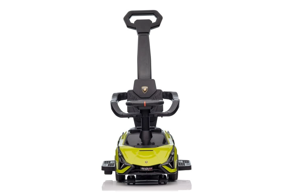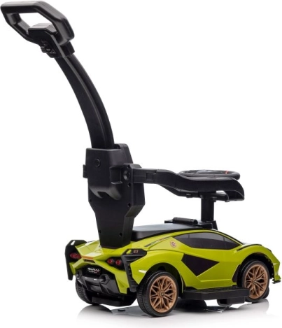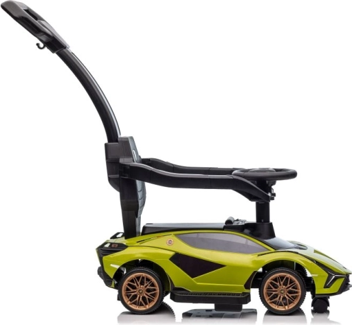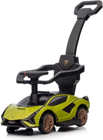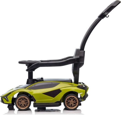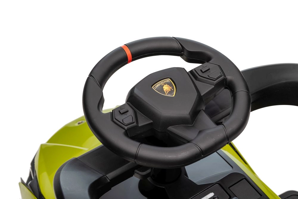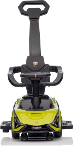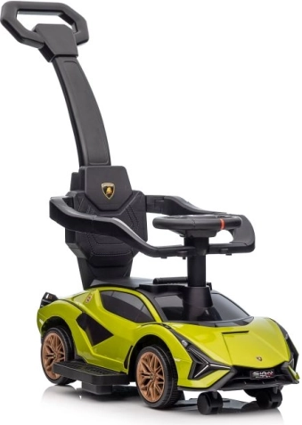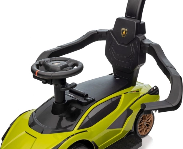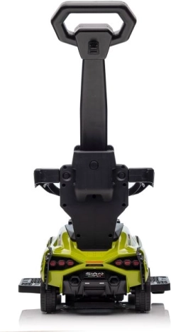 Der stylische Rutscher mit Griff LAMBORGHINI QLS-996T in Grün bietet Kindern eine sichere und spaßige Fahrt. Er verfügt über ein elterliches Schiebegestänge, einen Sicherheitsgurt/Schutzbügel und klappbare Fußstützen für Komfort und Sicherheit. Realistische Details eines Sportwagens und hochwertige Verarbeitung begeistern kleine Fahrer und ihre Eltern.