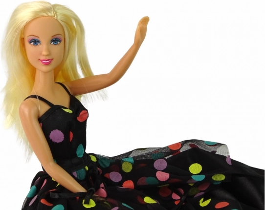 Puppe DEFA LUCY im langen schwarzen Kleid mit bunten Punkten