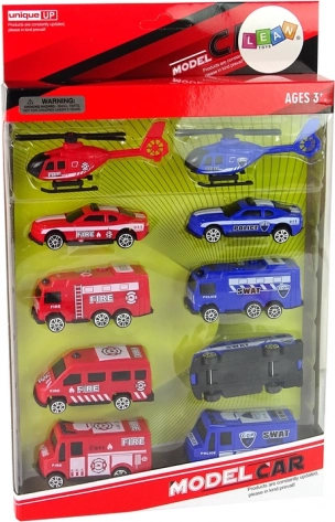 Dieses vielseitige Set bringt ein komplettes Rettungsteam – 5 Polizeifahrzeuge und 5 Feuerwehrfahrzeuge inklusive Hubschraubern. Die kompakten Abmessungen der Fahrzeuge erleichtern das Greifen und Steuern und unterstützen realistisches Spiel zu Hause und unterwegs.