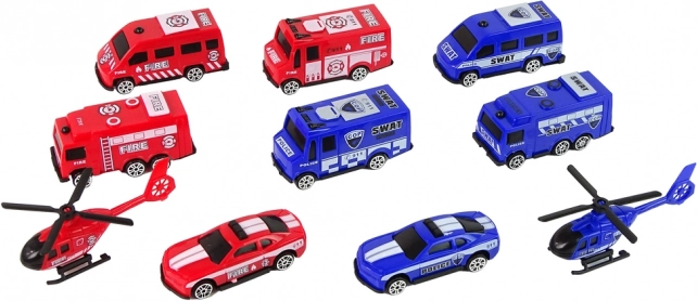 Fünf Polizeifahrzeuge und fünf Feuerwehrfahrzeuge für ausgewogenes Spiel und endlose Einsatzkombinationen.