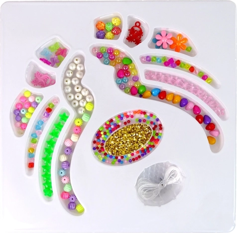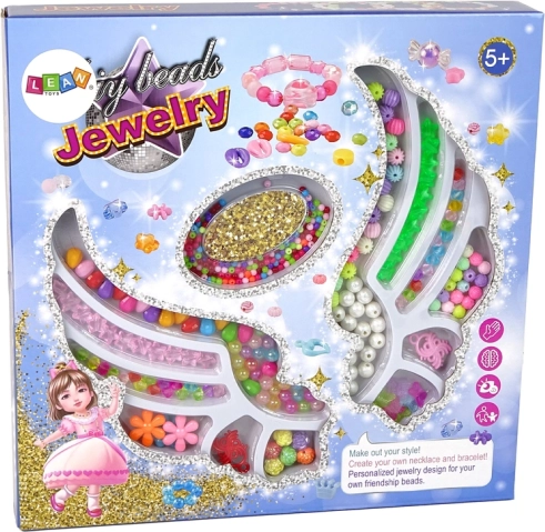 Kreatives Schmuck-Bastelset für Kinder ab 5 Jahren. Bunte Perlen und Anhänger, Fädelschnüre und Geschenkverpackung. Gestalte originelle Armbänder und Halsketten.