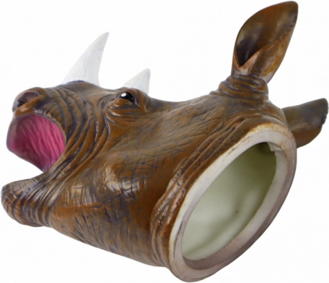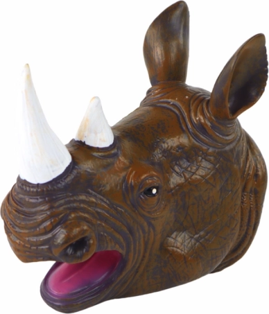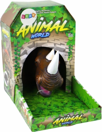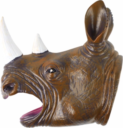 Diese Nashorn-Handpuppe wirkt außergewöhnlich realistisch: Sie hat markante schwarze Augen, präzise geformte Hörner und eine strukturierte Oberfläche, die an Haut erinnert. Das weiche Gummi liegt gut in der Hand und ermöglicht ein leichtes Bewegen von Kiefer und Mimik – so wird jede Erzählung zu lebendigem Theater.