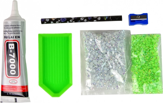 Das Set enthält alle notwendigen Werkzeuge und Kristalle, um Ihr eigenes Diamantkunstwerk zu erstellen.