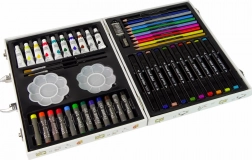 Dieser vielseitige Kunstkoffer ist ein ideales Geschenk für Kinder, die Farben und Fantasie lieben. Dank der übersichtlich angeordneten Utensilien haben kleine Künstler alles zur Hand – sie können zeichnen, malen und Farbtöne mischen. Die praktische Ausführung mit Metallgriff und Verschluss sorgt für einfachen Transport und eine sichere Aufbewahrung aller Materialien.