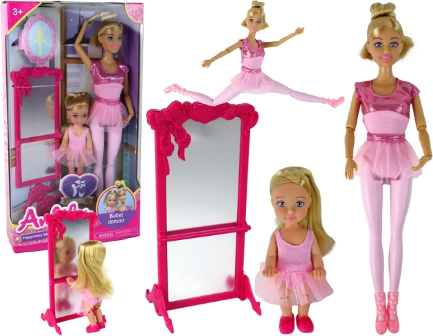 • Komplettes Ballett-Set: Mama, Tochter und Standspiegel.