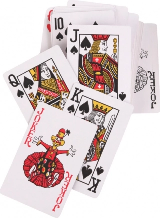 Enthält verschiedene Bildkarten wie König, Königin und Joker, die für klassische Spiele wie Poker oder Bridge unerlässlich sind.