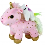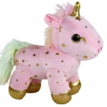 Geschmeidiger rosa Plüsch mit goldenen Sternchen und glitzernden Details macht das Einhorn zum niedlichen Begleiter und zur Deko.
